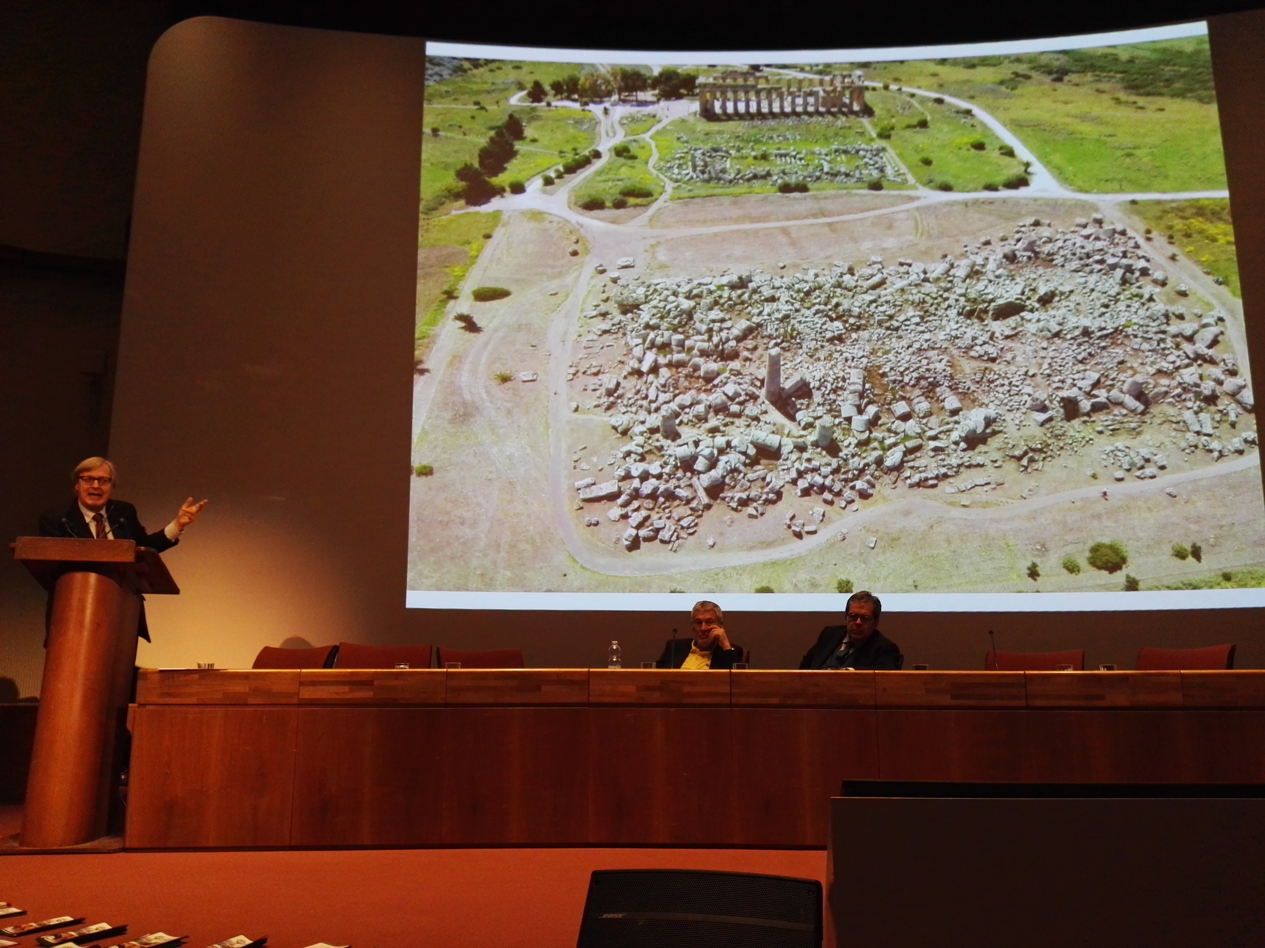 L’approccio partecipativo e divulgativo riflette un’esigenza diffusa e permette forme comunicative contemporanee e – volutamente – trans-disciplinari e trans-istituzionali. In questo contesto si è inserita la conversazione sul Tempio G di Selinunte con Valerio Massimo Manfredi, archeologo, giornalista e scrittore italiano, autore di numerose pubblicazioni scientifiche e di saggi storici, che ha affiancato con felici esiti l’attività di studio e di ricostruzione storico-archeologica all’esercizio della scrittura letteraria, come attestano successi editoriali quali la Trilogia di Aléxandros, la serie di Ulisse e numerosi romanzi storici di successo. Di rilievo anche la sua attività di sceneggiatore per la televisione e di conduttore televisivo di programmi di divulgazione scientifica. Sulla collina orientale di Selinunte si vede solo un informe ammasso di rocchi di colonne, più vicino a una ruina dantesca che a una vestigia antica. È quello che rimane di quello che oggi è noto come Tempio G, tempio greco di ordine dorico (VI-V sec. a.C.) dedicato agli dei olimpici e alle principali divinità della città di Selinunte (Zeus, Phebo, Apollo, Pasikrateia, Malophoros), che con i suoi quasi 45 metri di larghezza e 109 di lunghezza era uno dei più grandi dell’occidente greco. La ricostruzione 3D sicuramente aiuterebbe a capire meglio il grande tempio greco, sul quale recentemente si è focalizzata l’attenzione di Vittorio Sgarbi, he nel suo nuovo ruolo di assessore ai Beni culturali della Regione Sicilia, ha lanciato il progetto di ricostruirlo per anastilosi (vedi https://archeologiavocidalpassato.wordpress.com/2018/02/17/tourisma-2018-sgarbi-lancia-la-sfida-progetto-ricostruiro-per-anastilosi-il-tempio-g-di-selinunte-il-piu-grande-delloccidente-greco-sara-un-valore-aggiunto-di-bellezza-per-la-sic/).