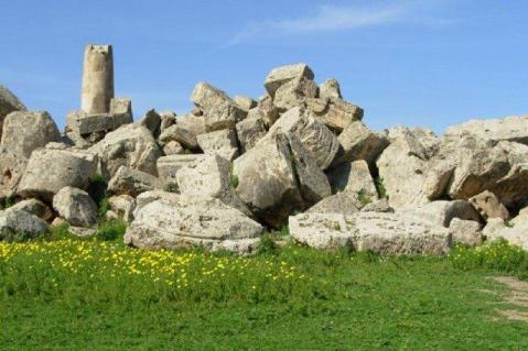 L’ammasso di rocchi di colonne effetto del crollo del tempio G di Selinunte