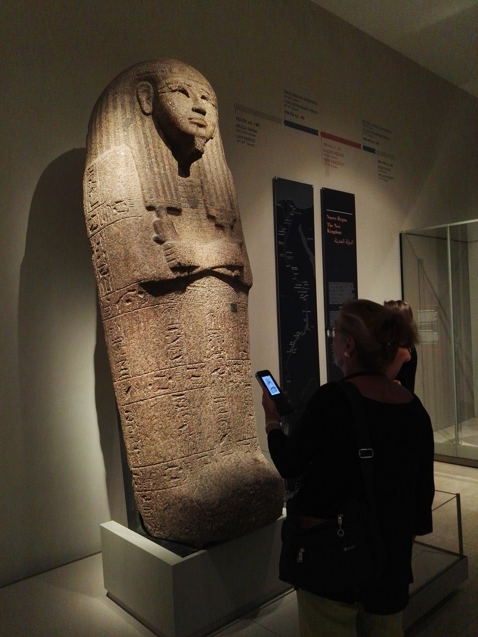 I sarcofagi antropomorfi compaiono dalla XVII dinastia. E non sono solo in legno ma anche in pietra. Al museo Egizio di Torino ci sono due esemplari meravigliosi in granito rosa di Assuan. Il sarcofago di Djehutymes, intendente del tempio di Amon a Karnak durante l’epoca di Ramses II, circa il 1250 a.C., e, di fronte a lui, il sarcofago della moglie, Isis, che ha il titolo di cantatrice di Amon, come dimostra il sistro che tiene in mano, titolo di una sacerdotessa molto comune in questo periodo”, descrive Greco. “Qui si vedono solo i due coperchi, dove si capisce che la policromia doveva rendere questi sarcofagi ancora più spettacolari. Sono imponenti e maestosi. Ma sono anche una testimonianza importante per quanto riguarda il collezionismo e la formazione della nostra collezione”. Questi due sarcofagi – ricorda il direttore – furono ritrovati da Antonio Lebolo, un piemontese nel 1819, e Lebolo penetrò probabilmente all’interno della tomba tebana TT32 che Djehutymes aveva fatto preparare per sé e la sua famiglia. “Lebolo dentro questa tomba non trovò solo questi sarcofagi di età ramesside, ma scoprì anche che la tomba fu riutilizzata in età romana, tra Traiano e Adriano. La tomba e il suo corredo venne suddiviso tra vari collezionisti, così oggi al museo Egizio vediamo reperti che appartengono alla prima occupazione di età ramesside, ma anche un sarcofago di età adrianea, che appartiene al piccolo Petamenofi. Ma i sarcofagi della famiglia di Petamenofi e le mummie della sua famiglia sono sparse per tutta Europa: i nonni al British Museum, i genitori a Parigi, cugini e fratelli a Berlino, e la zia al museo nazionale di Antichità di Leida”.