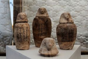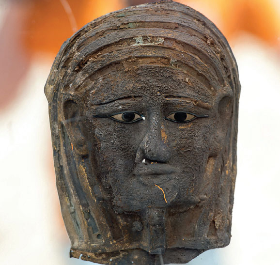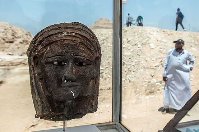 Maschere funerarie. Le camere funerarie, scavate nella roccia, sono state trovate in fondo a un pozzo profondo 30 metri. Lì si sono presentati agli occhi degli egittologi mummie, bare di legno e sarcofagi. In una di queste bare, con incredibile sorpresa dei ricercatori della missione, è spuntata una maschera d’argento che copre il viso, molto probabilmente, di un uomo appartenente alla casta sacerdotale della XXVI dinastia. “Pochissime maschere di metalli preziosi sono state conservate fino ai giorni nostri, perché le tombe della maggior parte degli antichi dignitari egiziani sono state saccheggiate nel passato”, afferma il ministro. E il capo della missione Ramadan Badri: “Questa maschera, di un sacerdote dell’epoca Sawi, ha un’importanza rara perché è di argento dorato, e si sa che l’argento nell’Antico Egitto era uno dei metalli rari, importato da Paesi come la Grecia, e perciò più prezioso dell’oro è stato importato da alcuni paesi come la Grecia”. La missione ha anche trovato una maschera di una mummia coperta con pietre semi-preziose, e una serie di vasi canopi in calcite “alabastro egiziano” e una serie di statuette in faience e oli per l’imbalsamazione con scritte in lingua egizia antica.