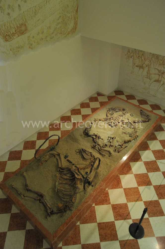“Imperdibile! La Tomba della Biga ti aspetta al museo Archeologico nazionale di Adria, che è aperto per tutta l’estate in orario pomeridiano”. La Tomba della Biga del III sec. a.C. è una sepoltura di tre cavalli e un carro dalla necropoli del Canal Bianco ad Adria. La tomba, rinvenuta nel 1938 ad Adria, fa parte di una più vasta area funeraria di epoca etrusca e romana. Il rito funebre ha comportato il sacrificio di tre cavalli, due dei quali attaccati ad un carro. Si riconoscono dei morsi detti ad omega e una punta di lancia (forse usata per il sacrificio), entrambi del III secolo a.C. Rimane un enigma: il destinatario di questo sacrificio. Il terreno circostante appariva però sconvolto, forse da una violazione, mentre una ricca tomba di un giovane si rinveniva a circa 15 metri di distanza. Nei pressi della biga si rinveniva anche la semplice sepoltura di un giovane, che indossava un torquis celtico in bronzo.