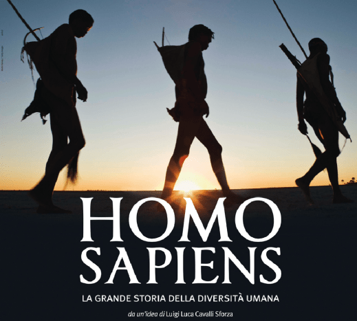 Il manifesto della mostra “Homo Sapiens. La grande storia della diversità umana”, curata da Luigi Luca Cavalli Sforza e Telmo Pievani a Roma tra il novembre 2011 e il febbraio 2012