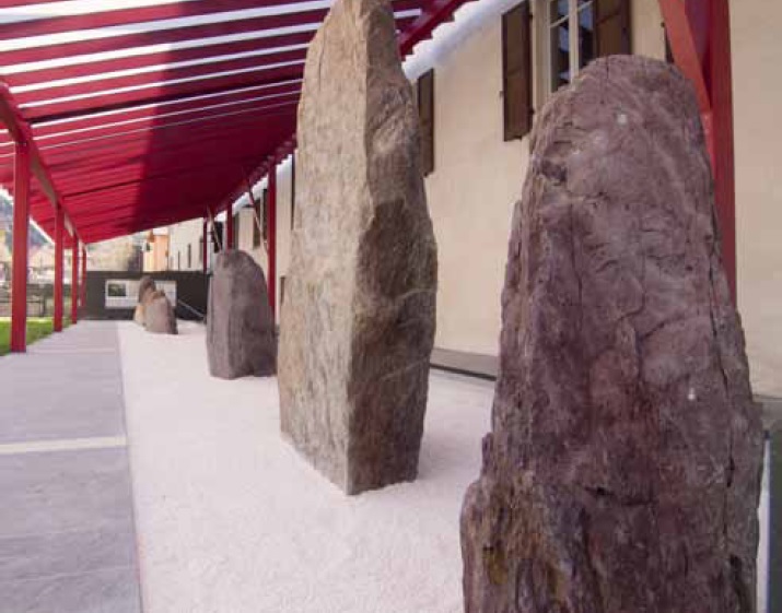 Le stele e i menhir del santuario megalitico di Pat allineati nel museo nazionale della Preistoria della Valcamonica (Mupre)