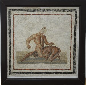 Un dettaglio del grande bassorilievo con scene gladiatorie trovato fuori contesto nell’area di Porta Stabia e conservato al Mann dalla metà dell’Ottocento