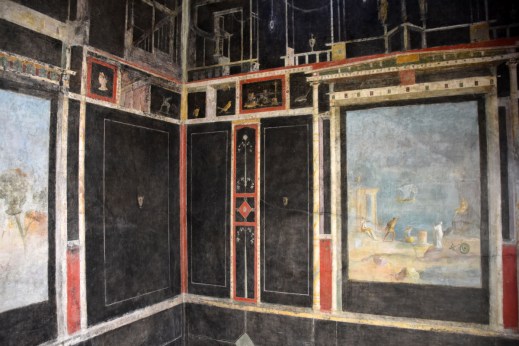 La mostra affronta anche il rapporto dell’area vesuviana con l’arte greca. In nostro aiuto interviene ancora Simona Rafanelli: “Osservatorio privilegiato per cogliere il senso dell’arte di vivere – nel concetto in sé e nella mostra di Vetulonia – sono quei brani di un fraseggiare al contempo didascalico e allusivo rappresentati dai frammenti delle pitture a fresco che formano il compendio del lascito, assolutamente unico e per questo ancor più prezioso, delle domus di Pompei e delle altre città del comprensorio vesuviano. Ogni aspetto che, nell’educazione dei giovani aristocratici, concorreva a comporre la sintesi riuscita della loro formazione, plasmata sulla paidéia greca, trova la più alta espressione nella gestualità delle figure, sottratte per sempre al filo di una narrazione sinottica per divenire icone assolute di un gesto bloccato nella fissità dell’istante nel quale sono state immortalate. Così la piccola filatrice, intenta nell’occupazione emblematica dell’attività domestica, diviene simbolo sempiterno di quella occupazione, nella quale risiede il significato più profondo della presenza e dell’identità della donna romana, eterna Lucrezia, nel cuore della dimora signorile”.