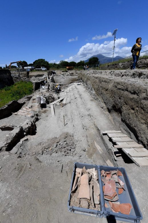 Pompei. I nuovi scavi nella V Regio hanno restituito un intero vicolo di edifici con balconi risparmiati dall’eruzione: conservati i parapetti, resti di tegole e anche anfore vinarie lasciate ad asciugare al sole. Osanna: sono una rarità, saranno restaurati