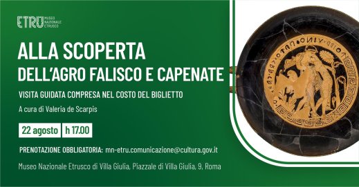Sabato 21 dicembre 2024 si inizia alle 11 con la visita guidata “Alla scoperta dell’Agro falisco e Capenate” a cura di Valeria de Scarpis. I Falisci e i Capenati erano due popolazioni che gravitavano sulla sponda destra del Tevere, vicini degli Etruschi e loro alleati negli scontri con Roma. Nelle sale dalla 31 alla 36 del Museo sono esposti reperti eccezionali: corredi ricchissimi, oggetti di importazione, testimonianze preziose per la storia della lingua e raffinate e originali produzioni locali, apprezzate anche fuori dai confini territoriali. Valeria de Scarpis accompagnerà i partecipanti a scoprire alcuni dei reperti che costituirono il primo nucleo di materiali del museo di Villa Giulia, strettamente connessi all’avveniristica impresa della Carta Archeologica d’Italia e alla nascita stessa del Museo. Visita compresa nel biglietto di ingresso, su prenotazione all’indirizzo mn-etru.comunicazione@cultura.gov.it indicando il numero di partecipanti. Sarà possibile prenotarsi direttamente in sede, salvo disponibilità.