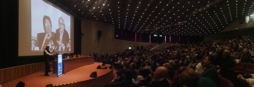 Vittorio Sgarbi commemora la figura di Sebastiano Tusa davanti alla platea di TourismA 2020 (foto Graziano Tavan)