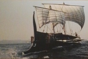 Una delle tre pentecontere dipinte sul dinos di Exekìas conservato al museo nazionale Etrusco di Villa Giulia di Roma