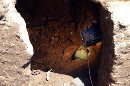 A far pensare che si tratti della sepoltura di un bambino è stato il rinvenimento di ossa di piccole dimensioni. “Potrebbe trattarsi di una persona di dieci anni”, dice la soprintendenteAlfonsina Russo Tagliente, “ma aspettiamo l’esito delle analisi antropologiche per confermare il sesso e l’età”. “Poi, sul pavimento, abbiamo rinvenuto dei fori che seguono una forma rettangolare al centro della cella”, continua la soprintendente. “È suggestivo pensare che lì fosse collocato un letto funebre, ma mancano gli altri resti organici”. In ogni caso, per adesso la sepoltura è stata soprannominata “del piccolo principe”, anche perché, data la vicinanza con la tomba della Sfinge, si ipotizza che possa appartenere a un membro della famiglia principesca. Inoltre “sul vestibolo rettangolare nella cui parete di fondo si aprono due celle”, continua Russo Tagliente, “dove erano posti numerosi oggetti tra cui un’ascia, una lancia, un coltello, alcuni oggetti in bronzo e in ceramica, e anche una piccola sfinge”.